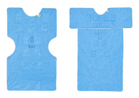 Platzieren Sie BARRIER® EasyWarm®+ mit den Wärmepads nach oben. Die Wärmedecke ist flexibel und für den Einsatz bei unterschiedlichsten Lagerungen der Patient:innen geeignet, da sie aus zwei Teilen besteht. Das innovative Design bietet die Möglichkeit, gleichzeitig den oberen und unteren Bereich des Körpers zu bedecken. Der obere und untere Bereich kann leicht durch einen Klettverschluss getrennt und wieder zusammengefügt werden. Zusätzlich kann der untere Bereich an der dafür vorgesehenen Markierung in zwei Teile geschnitten werden.
